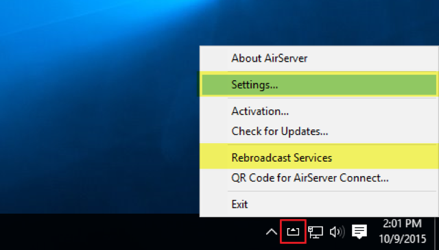 To update the AirServer to the latest version right-click on the AirServer icon at the bottom right and select "Check for Updates" option. Follow the steps to complete the update.